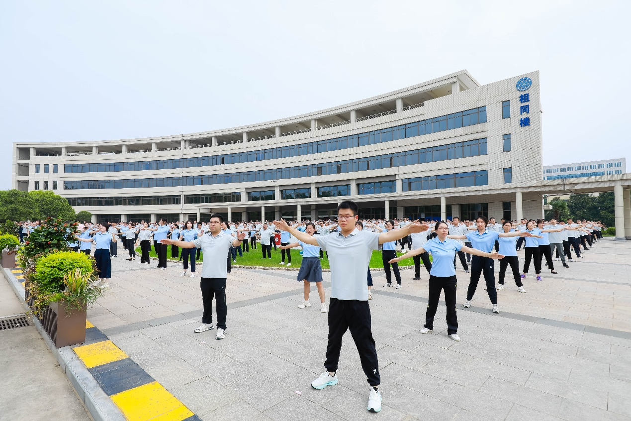 清晨的祖同樓前廣場,在激昂的音樂中,25個基層分工會組隊參加《第九套廣播體操》展示活動。職工們排列整齊、精神飽滿、服裝統一,做操時動作規范、剛勁有力,充分展現西光人團結奮進、昂揚向上的精神風貌。