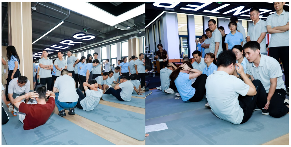 接下來,在職工健身中心內,“科研鐵人健康同行”團隊挑戰賽激情展開。各基層分工會組織的17支隊伍展開智慧與力量的角逐:科研接力跑中疾馳的身影,動感單車上飛旋的車輪,仰臥起坐時繃緊的脊梁……每一項挑戰都需3名隊員(含至少1名女隊員)緊密協作。賽場上擊掌相慶的默契,此起彼伏的助威吶喊,將現場運動氛圍推向高潮。