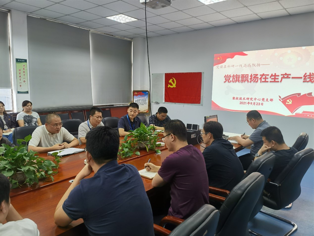 9月23日下午,裝校技術研究中心黨支部在10號樓會議室開展“讓黨旗飄揚在生產一線”活動,為科研生產攻關“黨員突擊隊”授旗。活動由裝校技術研究中心主任、黨支部書記康世發同志主持。空天技術處處長王鋒、航天型號辦主任葛永嬌、光電技術處處長楊洪濤、先進制造部副部長郭高等應邀出席,支部部分黨員和部門科研骨干參加活動。