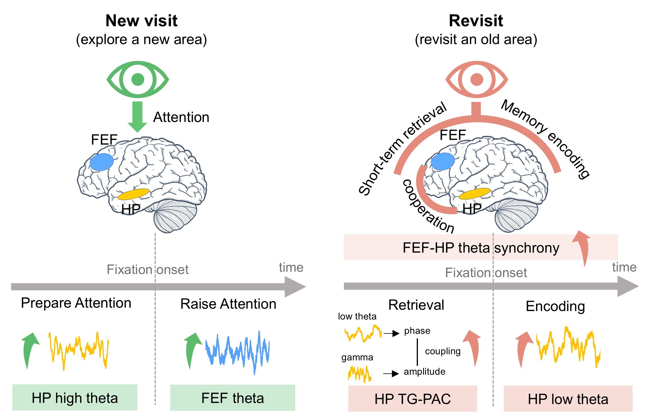 圖:探索(左列)和回訪(右列)行為背后的注意力與記憶系統(tǒng)分工協(xié)作機(jī)制